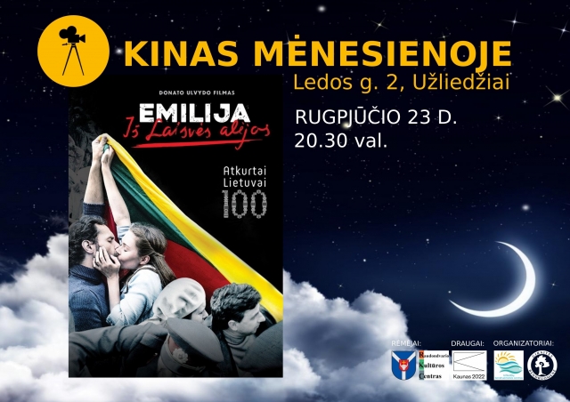 Rugpjūčio 23 d., ketvirtadienį, 20.30 val., prie Užliedžių mokyklos vėl galėsite matyti "Kiną mėnesienoje". Šįkart bus rodomas naujausias lietuvių kūrėjų filmas "Emilija iš Laisvės alėjos".