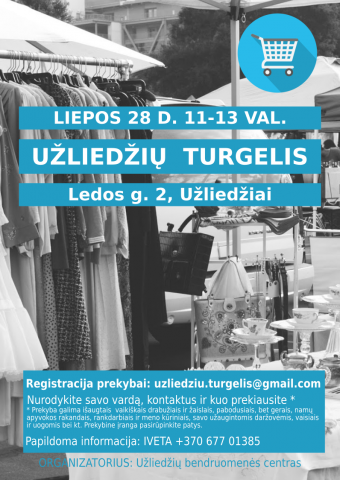 Turgelis vyks liepos 28 d. 11-13 valandomis Užliedžių laisvalaikio salėje arba greta esančioje pievelėje, priklausomai nuo oro. Turgelio tikslas - ne tik parduoti gerus, bet nenaudojamus daiktus, rankdarbius, gausiau, nei reikia šeimai, užderėjusias daržoves ar vaisius. Tikimasi, kad turgelis bus ir bendravimo, naujų pažinčių vieta.