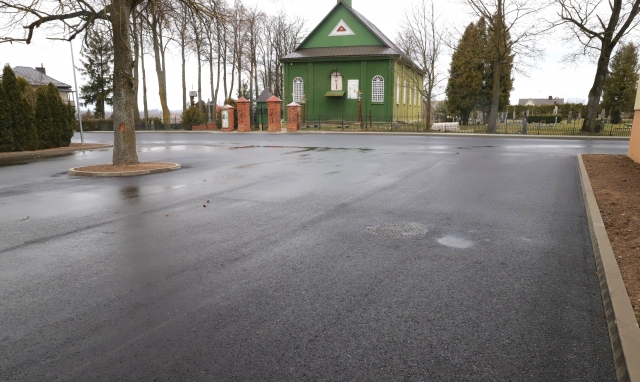 Babtų miestelio aikštėje išlieta nauja asfalto danga