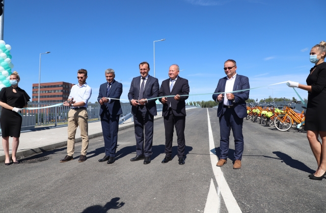 Objektą, kurio vertė 6,9 mln. eurų, pastatė bendrovė „Kauno tiltai“. Naujuoju tiltu galės naudotis ne tik automobiliai, bet ir pėstieji, dviratininkai. Dviračių takas driekiasi ne tik šalia magistralės, bet ir per Kleboniškio mišką. Todėl po oficialių kalbų, susisiekimo viceministras Vldislavas Kondratovičius, Kauno rajono meras Valerijus Makūnas, Kauno LEZ valdymo bendrovės direktorius Vytas Petružis ir kiti renginio dalyviai sėdo ant dviračių ir pirmieji išmėgino naująjį transporto mazgą.